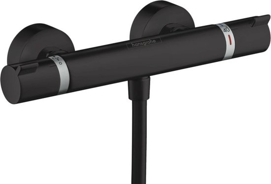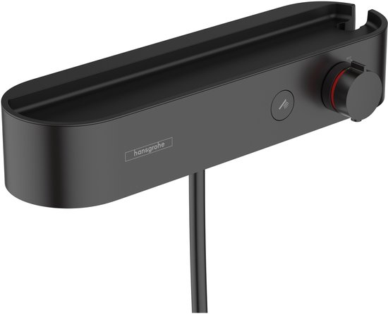 Douchethermostaat van hansgrohe, model ShowerTablet Select 400, voor opbouwmontage. Uitgevoerd in een matte zwarte afwerking.